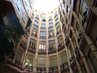 By this time it was lunch time and not a rain cloud in sight! We grabbed some lunch and then went up to La Pedrera which was an apartment block built by Gaudi.