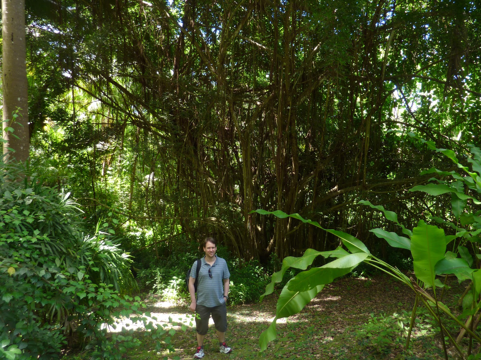 Our first stop today was the Flower Forest, a horticultural park with flowering plants and tropical trees. The 50-acre property was formerly a sugar plantation set in a deep gully - of course I hadn't thought about the logistics of getting in to the gully and we went down the steepest, most bumpiest road we have ever been on! The road was so bumpy, because it has so many potholes in it, that you had to go down the road slowly or the steering wheel would be bumped out of your hand!