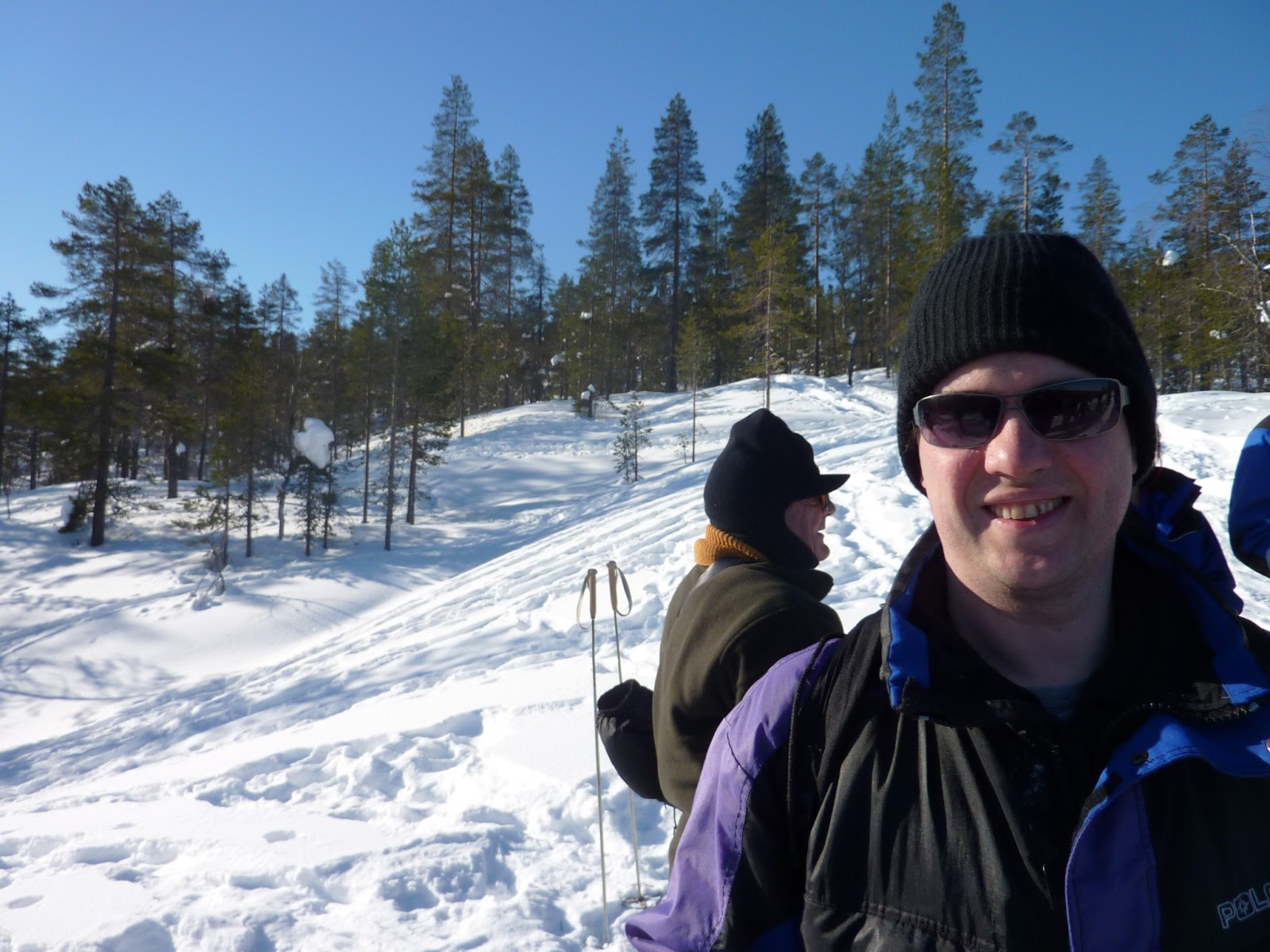 After a quick drink stop at the top, we started to make our way down and this is where it got very interesting - going up the snow hadn't been that deep but they took us through deep virgin snow going down. Well I think I was the first one to fall down and, as I was one of the first ones going down, it meant that everyone is then just walking around you as you flail in the snow - it was a nightmare to get up as you had these great big things on your feet. I managed to pull myself up (using every bit of energy that I had) with Peter shouting 'don't twist your ankle' as I practically had my legs pointing is opposite directions (a bit of an exaggeration but you know what I mean!). However, I got the last laugh as everyone else kept falling over so I just waltz passed them (until I fell over again and Peter had to come and help me up!).