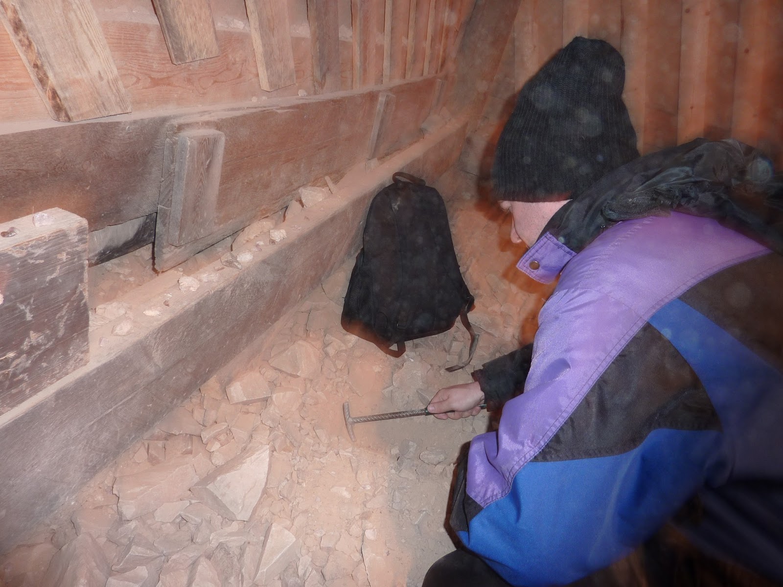 The snow was just starting to fall so they took us in to a small hut to give us a hot drink and to tell us about the mine and then it was our turn to do a spot of mining! We were taken in to the mine, given a hammer and off we went - we were told that if we found anything that you could hold in your fist (or smaller) you could keep, otherwise you would have to pay for it (even though you had done all the hard work!). It was fun for a while but, as my hard work wasn't baring much, I did get a little bored towards the end and it made me realise that I am not cut out to be a miner (too dirty and too much like hard work!).