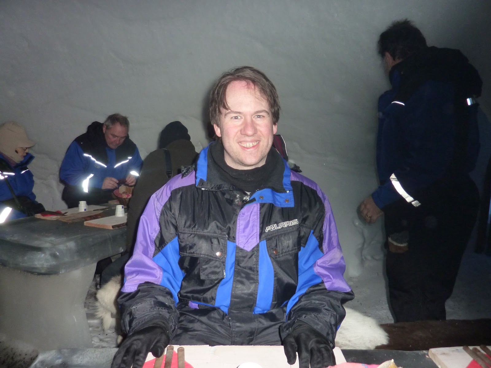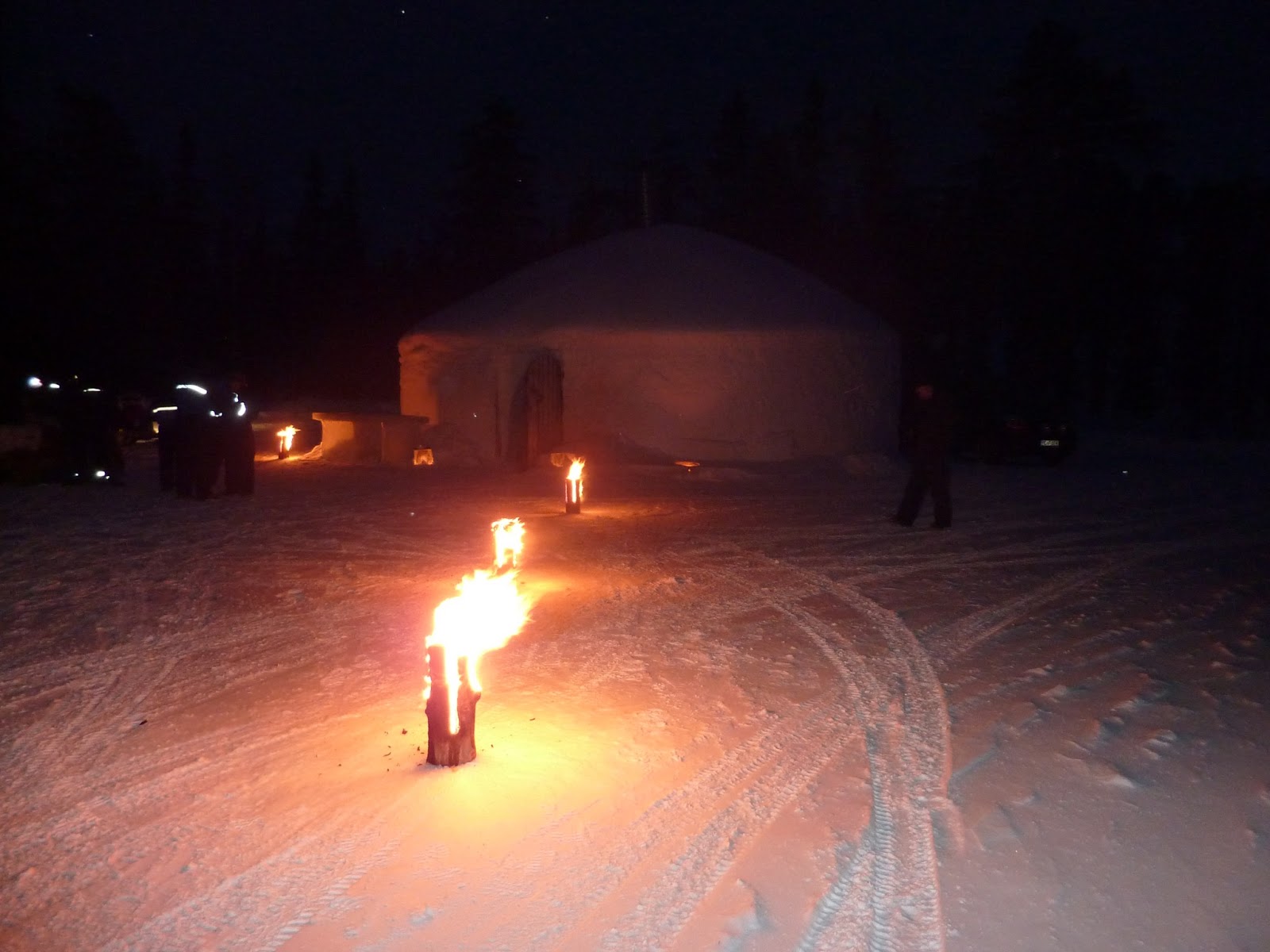 In the evening, there was a dinner planned for the group and we were told to turn up in all our snow gear and to wrap up warmly. We were then put in to sleighs pulled by snow mobiles and taken up in to the mountain - what a surprise when we turned up at our dinner destination - an Igloo!