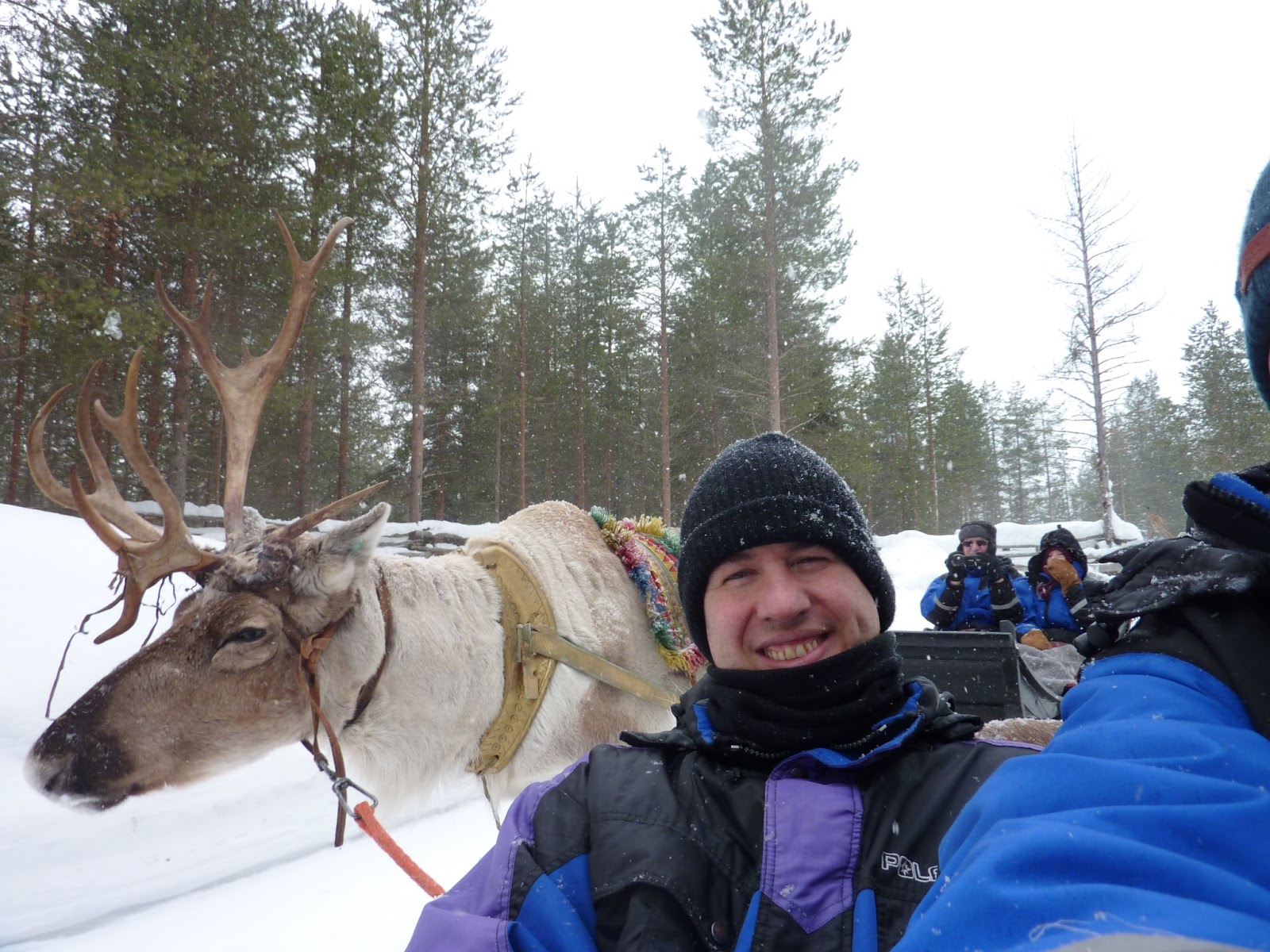 It was snowing so it felt very wintery being pulled through the forest - you will be pleased to know that we had no near death episodes with the reindeer but one of them became loose from the sleigh in front which caused a bit of commotion. I could have done with the reindeer going a bit faster as it was pretty much at walking pace, but I think we had been spoilt by our husky safari but the good thing was they didn't poo as much as the dogs, nor did it smell as bad!
