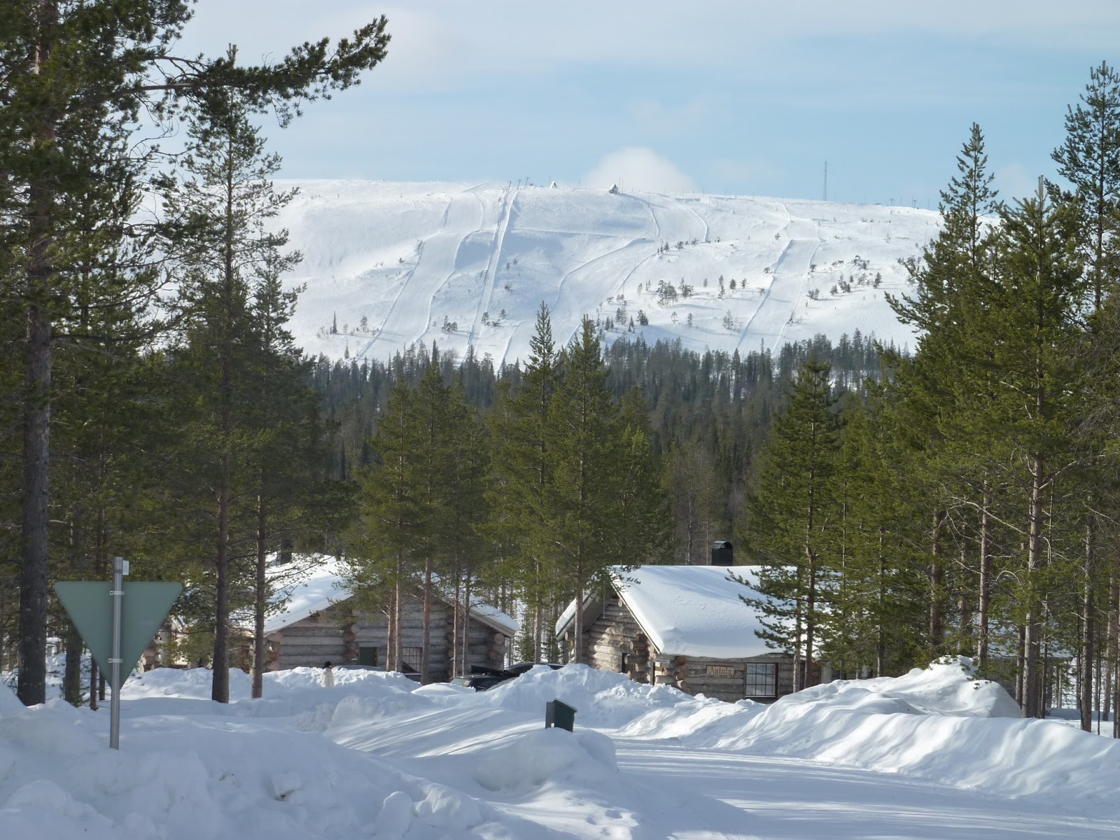 Today was our last full day in Luosto - there was no set activities but you could book additional ones if you wanted to - Peter and I dithered about whether to do another husky safari as it was so outrageously expensive but when we finally thought 'why not, we are on holiday' they were fully booked - the other choices were either cross country skiing (too hard!) or Ice fishing (to boring!) so we decided to do a walk instead (which costs nothing!). We spoke to our rep who suggested a walk and marked it on our map and off we went - it was a lovely walk - really quiet and peaceful - and we went through wide open spaces as well as through the forest.