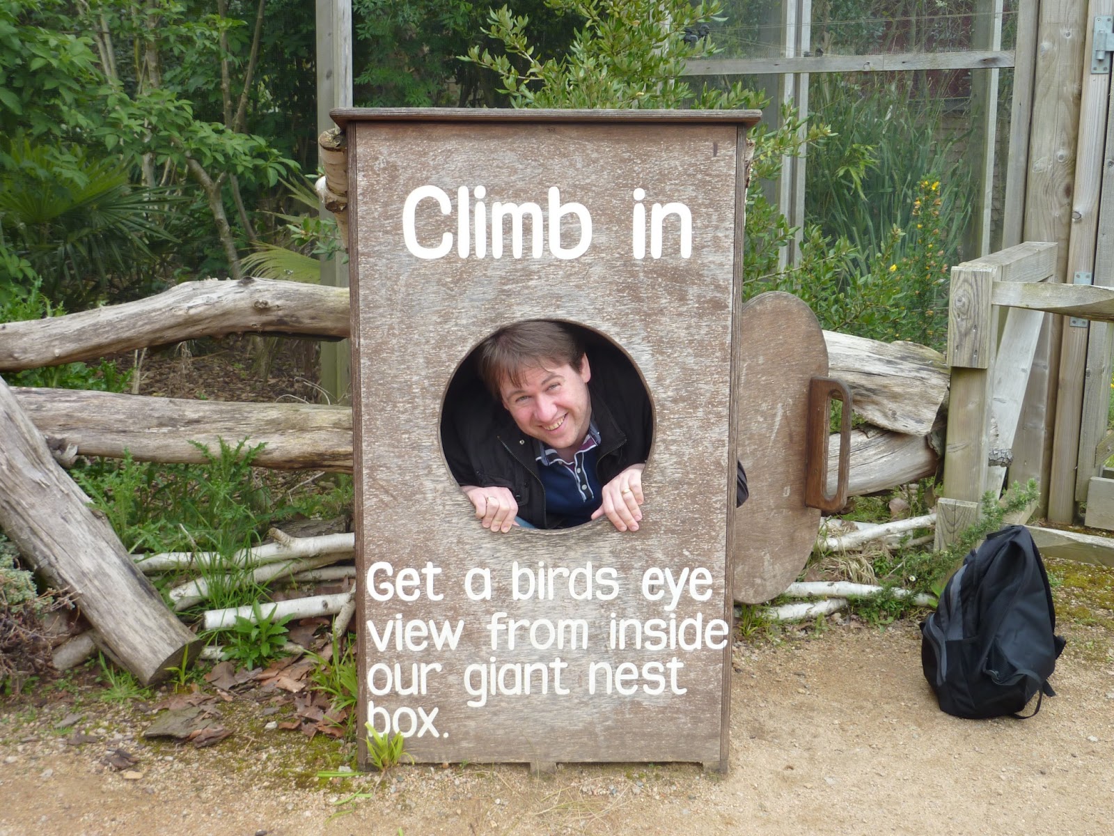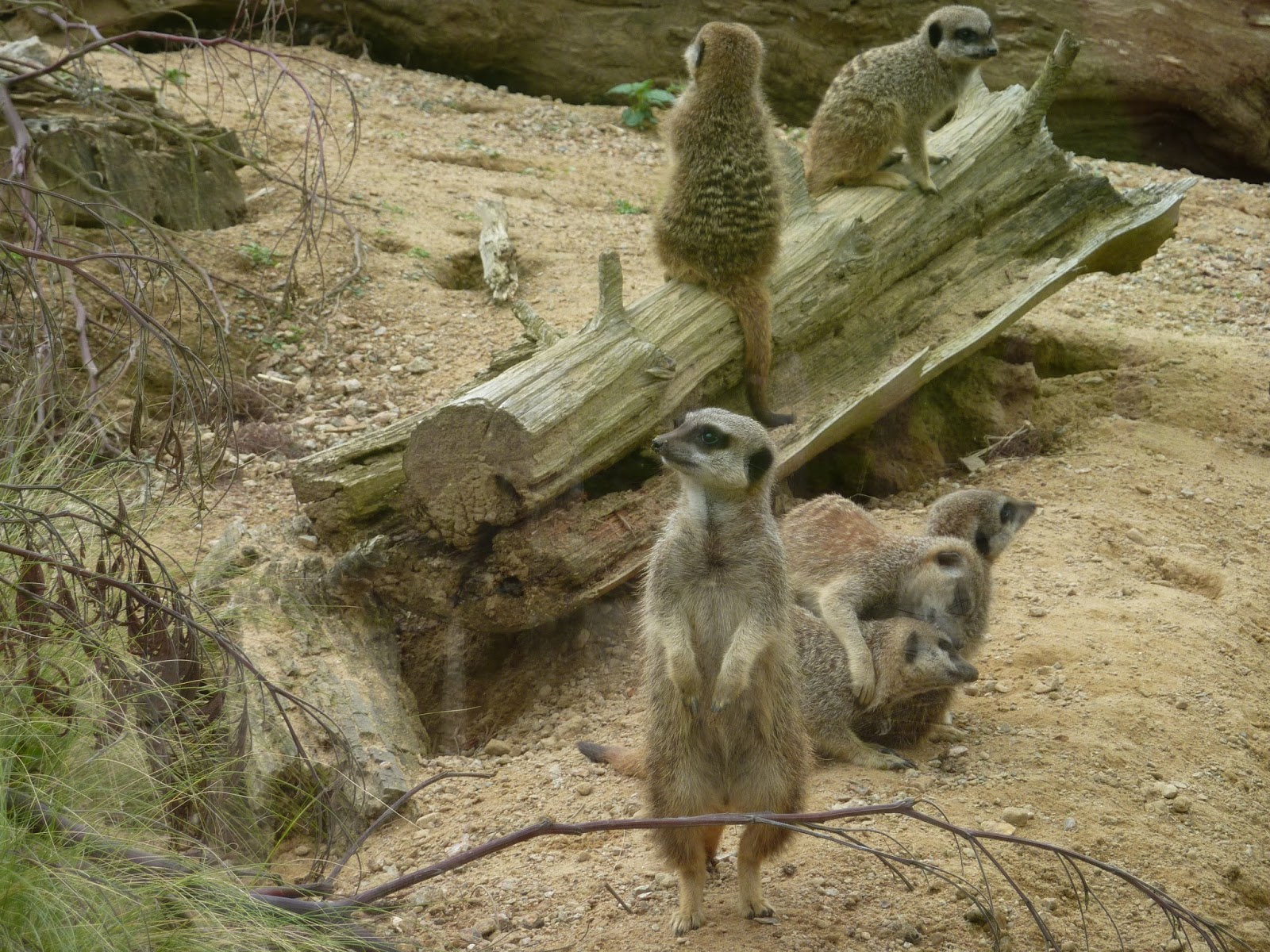 | Peter pretending to be a meerkat (look at the meerkat behind him looking at him!) |