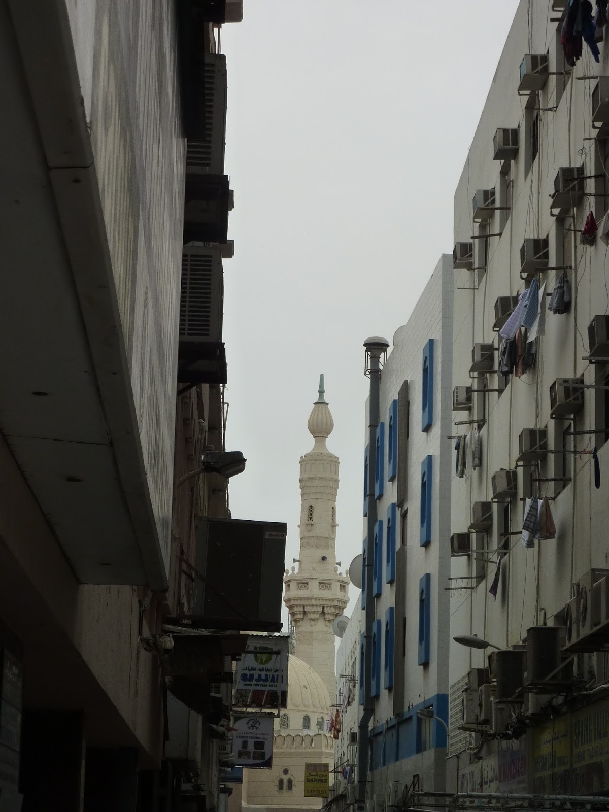 | One of the streets in Old Dubai - you can see a tower of one of the mosques |