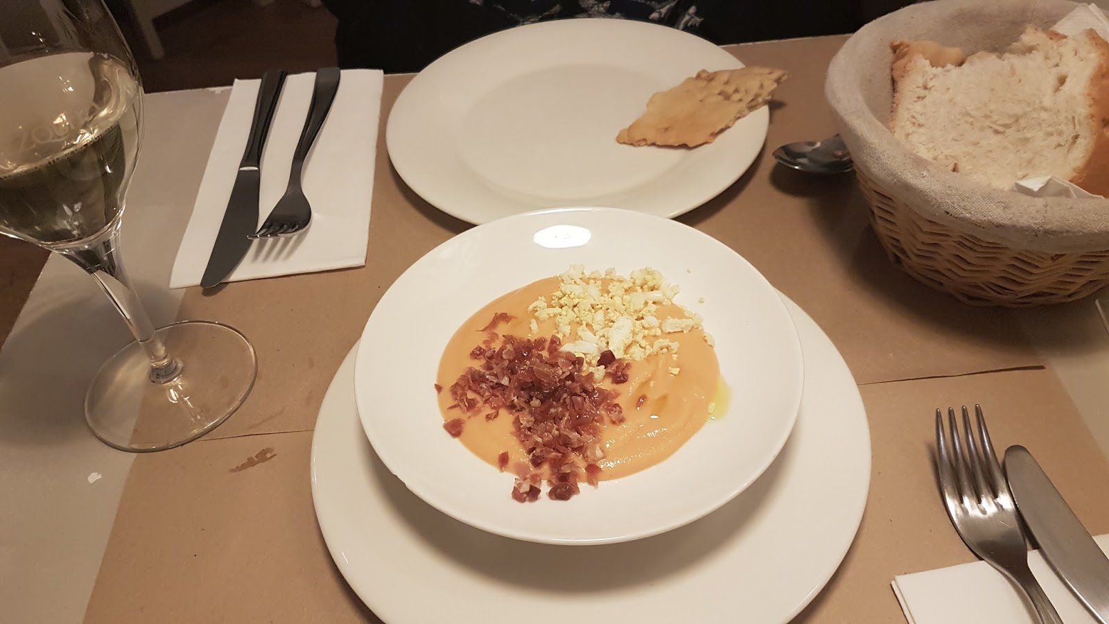 In the evening we went to another tapas restaurant close to our apartment that I had seen on Trip Advisor. We chose their set tapas menu so that we could try something a bit different - we had the Salmorejo which is a traditional dish in Cordoba - it is a cold, creamy tomato soup with ham and egg on top - potato omelette, aubergines with a sweet sauce, meatballs in almond and saffron sauce, deep fried cod, pork stew and for dessert a biscuit and chocolate cake. We were very full at the end of the meal but it was all very nice and there wasn't anything we didn't like!